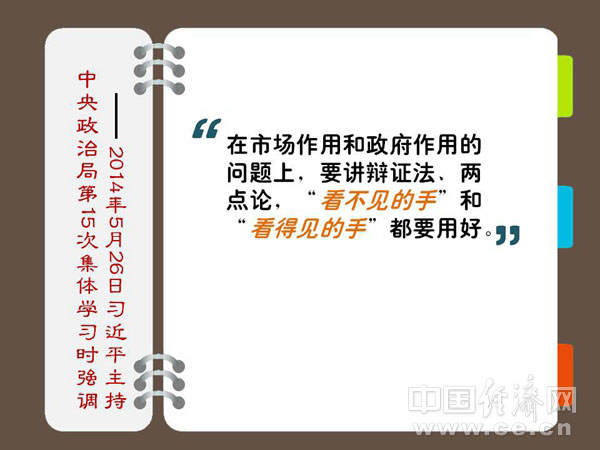 使市場在資源配置中起決定性作用、更好發(fā)揮政府作用,既是一個(gè)重大理論命題,又是一個(gè)重大實(shí)踐命題。在市場作用和政府作用的問題上,要講辯證法、兩點(diǎn)論,“看不見的手”和“看得見的手”都要用好,努力形成市場作用和政府作用有機(jī)統(tǒng)一、相互補(bǔ)充、相互協(xié)調(diào)、相互促進(jìn)的格局,推動(dòng)經(jīng)濟(jì)社會(huì)持續(xù)健康發(fā)展。