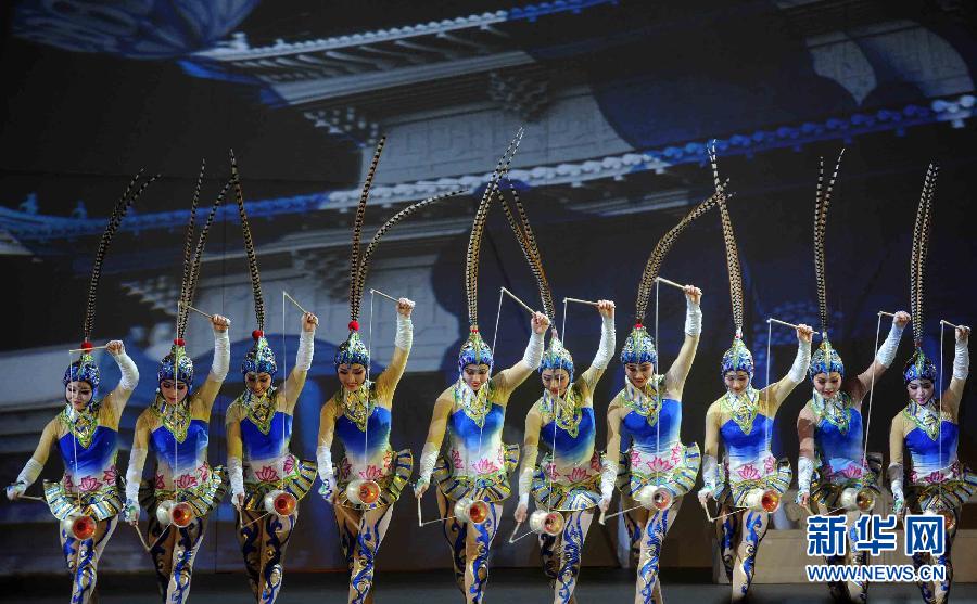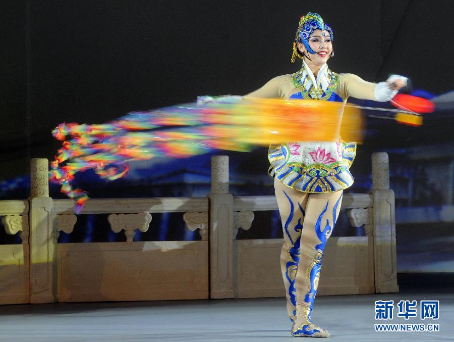11月8日,演員在表演抖空竹。當(dāng)日,北京市人民政府和2014年APEC工商領(lǐng)導(dǎo)人峰會組委會等共同舉辦“APEC工商之夜”,2014年APEC工商領(lǐng)導(dǎo)人峰會參會代表等1200余人出席。新華社記者 公磊 攝