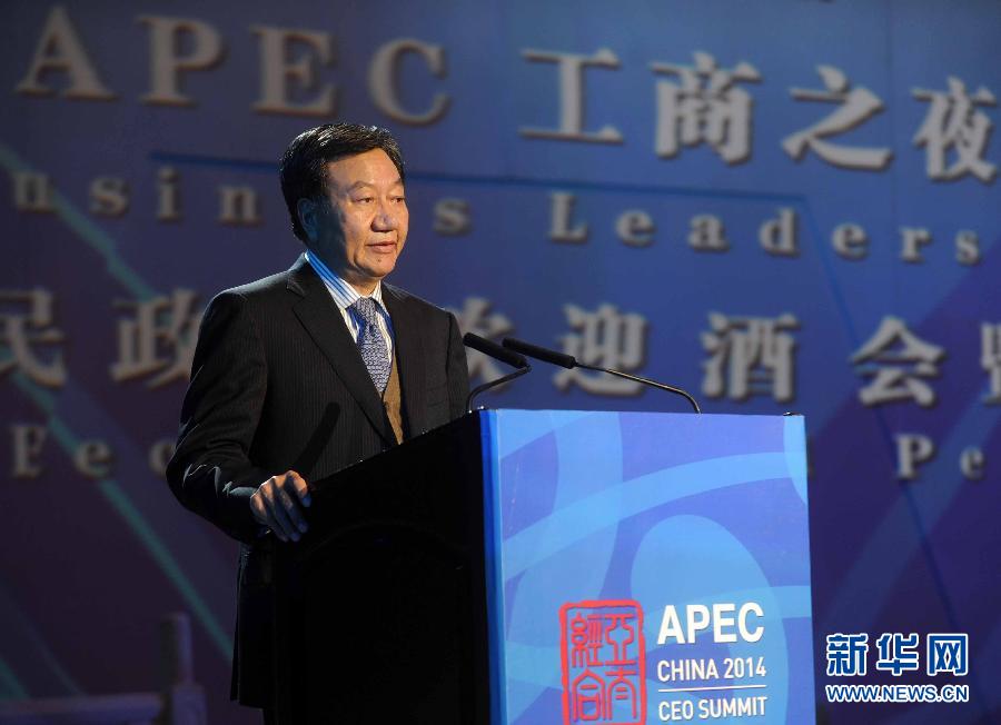 11月8日,北京市市長王安順在活動中致辭。當(dāng)日,北京市人民政府和2014年APEC工商領(lǐng)導(dǎo)人峰會組委會等共同舉辦“APEC工商之夜”,2014年APEC工商領(lǐng)導(dǎo)人峰會參會代表等1200余人出席。新華社記者 公磊 攝