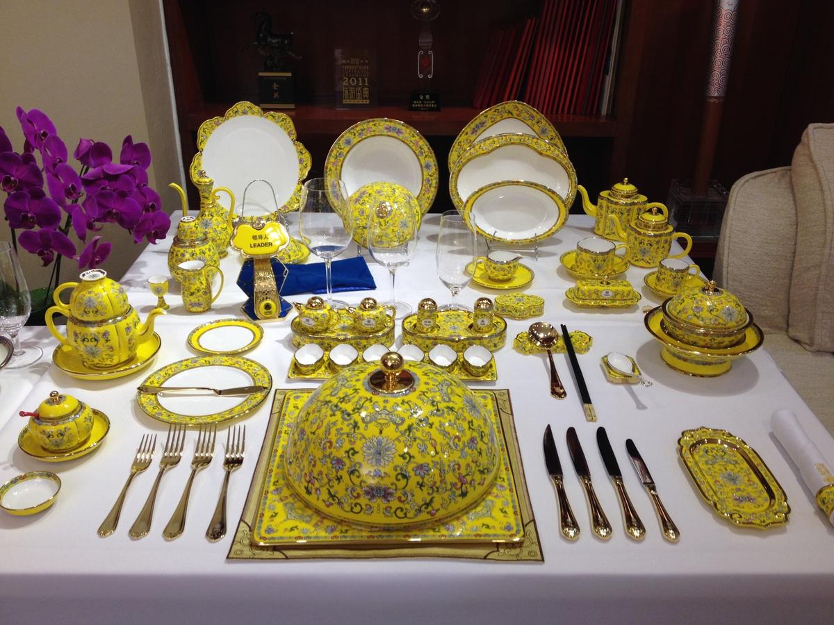 考慮到北京是皇城,“龍脈之地”,莊志誠在習(xí)近平主席和其他國家(地區(qū))領(lǐng)導(dǎo)人使用的主桌餐具上,顏色選用“帝王黃”,“能夠營造出一種中華的、典雅的,又有儀式感的氣氛”。