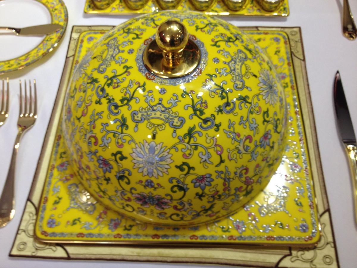 另一個(gè)亮點(diǎn)是造型極為復(fù)雜的湯盅。湯盅的設(shè)計(jì)是所有餐具中最為復(fù)雜的,由里外4件獨(dú)立瓷具組合而成,制作過程要經(jīng)過50多道工序。