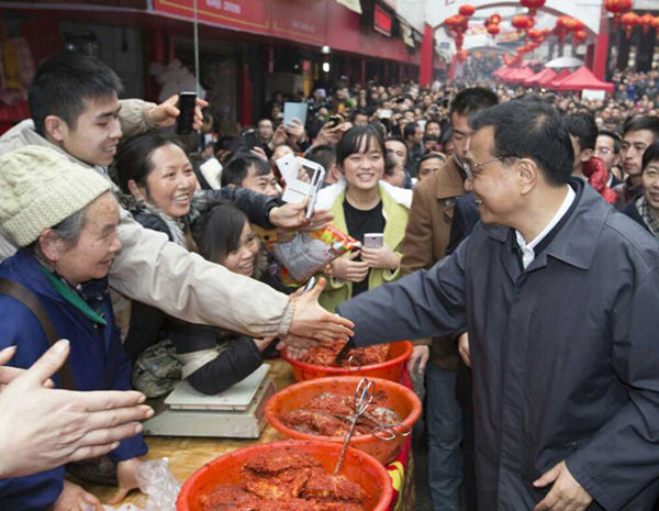 央廣網(wǎng)黎平2月13日消息(記者馮悅)熱騰騰的糯米飯、摩肩接踵的趕集人。春節(jié)前貴州黎平大市場(chǎng)尤為熱鬧。13日現(xiàn)身這里的李克強(qiáng)邊看邊與群眾打招呼,詢(xún)問(wèn)市場(chǎng)供應(yīng)、公平交易和食品安全等,100多米街市走了20多分鐘?粗鵁艋\、春聯(lián)和各色年貨,總理贊嘆:還是縣城年味濃!