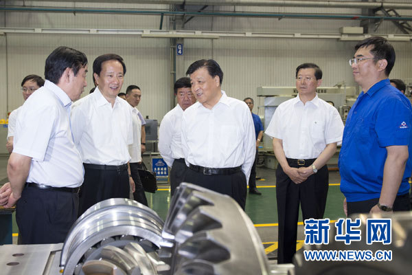 這是7月10日,劉云山在石嘴山市天地奔牛實(shí)業(yè)公司了解企業(yè)科技創(chuàng)新和黨建人才工作。新華社記者王曄攝