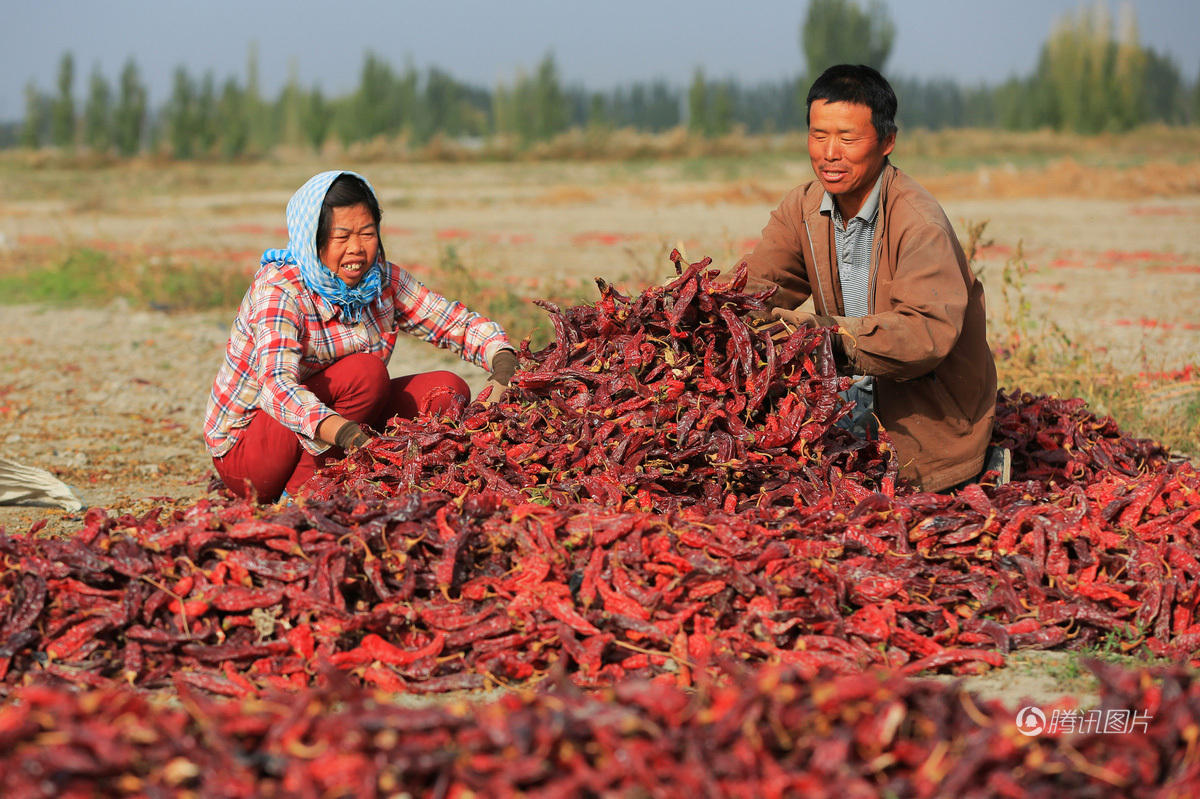 新疆農(nóng)民曬辣椒 大地染成一片紅(組圖)