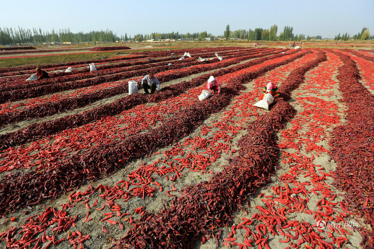 新疆農(nóng)民曬辣椒 大地染成一片紅(組圖)