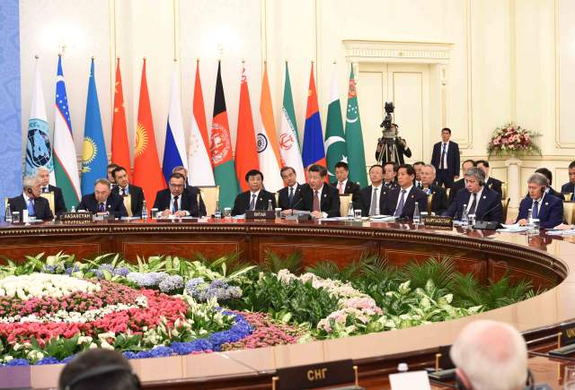 6月24日,國(guó)家主席習(xí)近平在烏茲別克斯坦塔什干出席上海合作組織成員國(guó)元首理事會(huì)第十六次會(huì)議并發(fā)表重要講話。(新華社記者饒愛(ài)民攝)