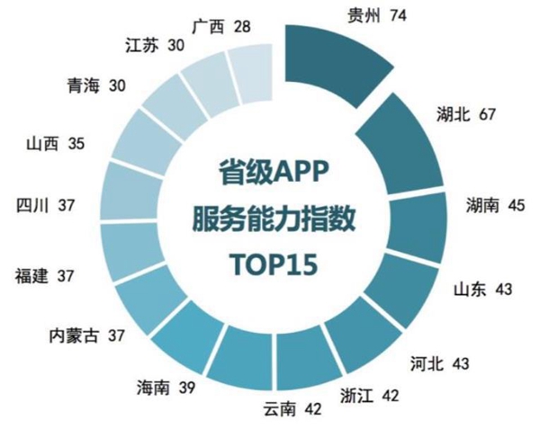 數(shù)據(jù)顯示,貴州政務(wù)APP服務(wù)能力指數(shù)為74,位列第一,湖北省、湖南省分別位列第二、三。其中,貴州省政務(wù)APP因其界面友好、類目清晰、操作便捷,信息服務(wù)時(shí)效性強(qiáng)和辦事效率高的特點(diǎn),備受用戶好評(píng)。