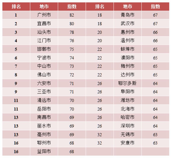 在地級(jí)市中,廣州、宜昌、汕頭三市位列三甲。簡(jiǎn)單分析發(fā)現(xiàn),甘肅省、浙江省、吉林省所轄的地級(jí)市,除浙江省的寧波市、麗水市外,均未進(jìn)入地級(jí)市“雙微”服務(wù)能力指數(shù)的前20。相反,省級(jí)“雙微”服務(wù)能力指數(shù)并未進(jìn)入前15名的廣東省卻有多個(gè)地級(jí)市的“雙微”服務(wù)能力指數(shù)名列前茅,其中,廣東省有五市躋身前10,廣州市、汕頭市分列第一、第三位。這也說(shuō)明,省級(jí)政府與其下屬地市政府“雙微”服務(wù)能力建設(shè)上的步調(diào)并不完全一致。