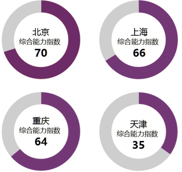 綜合指數(shù)是政府網(wǎng)站、“兩微一端”四個(gè)渠道服務(wù)能力的綜合測(cè)評(píng)指標(biāo)。在直轄市中,北京、上海、重慶的綜合能力指數(shù)均超過(guò)直轄市的平均水平,北京排名第一。