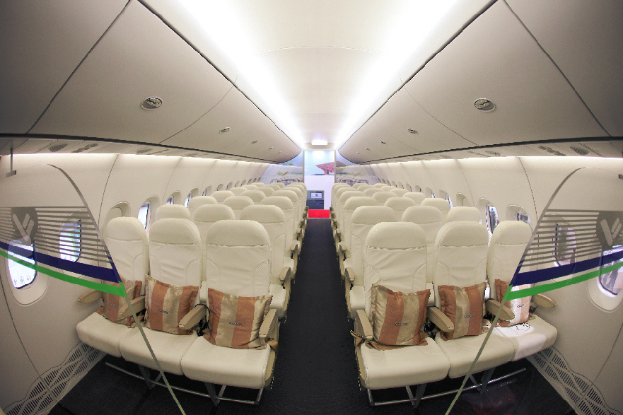 新華網(wǎng)上海5月3日電(記者 賈遠(yuǎn)琨 郭慕清)C919就要“上天”了,記者從中國(guó)商飛有限責(zé)任公司獲得C919若干內(nèi)艙、駕駛艙以及外觀照片,一起來(lái)看。圖為機(jī)艙內(nèi)部。新華網(wǎng)發(fā)