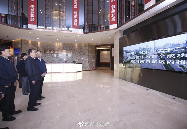 李克強(qiáng)8日考察河南自貿(mào)區(qū)開封片區(qū)綜合服務(wù)中心。當(dāng)?shù)赝ㄟ^"放管服"改革,新登記注冊企業(yè)時(shí)間縮短4/5。總理說,開封既不沿海又不沿邊,但通過自貿(mào)區(qū)試驗(yàn)照樣創(chuàng)出了一流經(jīng)驗(yàn)。開封過去以“古”聞名,今天通過自貿(mào)區(qū)要以“新”出彩。