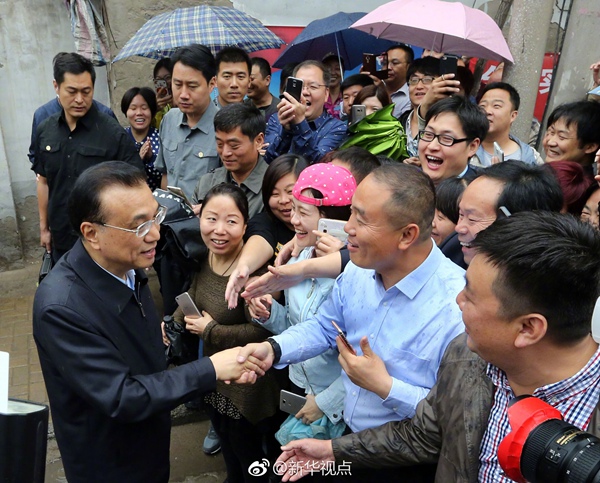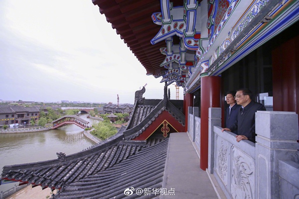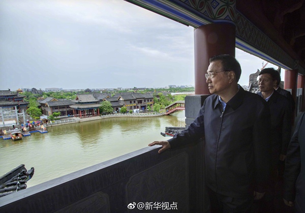 李克強(qiáng)冒雨察看“新”“舊”開封