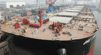 昨天上午,我國制造的世界最大礦砂船——新一代超大型40萬噸礦砂船在青島下水。這標志著該船的船體結(jié)構(gòu)已完成建造,接下來將進行船體電器設(shè)備安裝和相關(guān)性能測試等收尾工作。該型礦砂船總共將建造30艘,分由國內(nèi)四家船廠制造,主要用于巴西-中國航線的鐵礦石運輸。