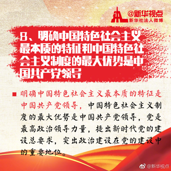 新華網北京10月20日電 新時代中國特色社會主義思想,有“八個明確”!快收藏。(據新華社“新華視點”微博報道)