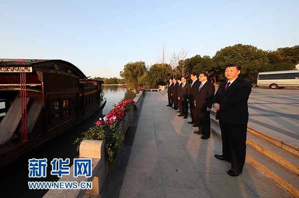 下午,習近平等從上海來到浙江嘉興南湖邊,瞻仰紅船,并參觀了南湖革命紀念館。參觀結束時,習近平發(fā)表了重要講話。