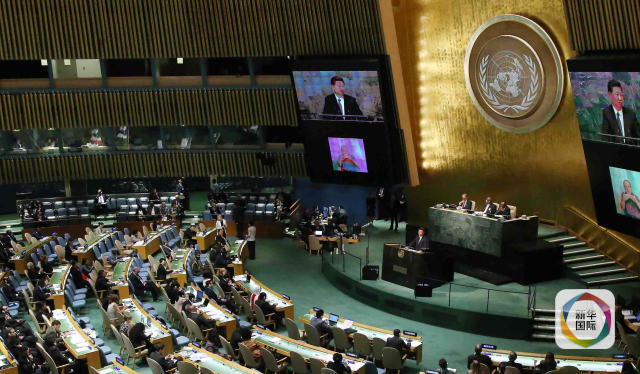 2015年9月28日,國家主席習(xí)近平在紐約聯(lián)合國總部出席第70屆聯(lián)合國大會一般性辯論并發(fā)表題為《攜手構(gòu)建合作共贏新伙伴 同心打造人類命運(yùn)共同體》的重要講話。新華社記者龐興雷攝