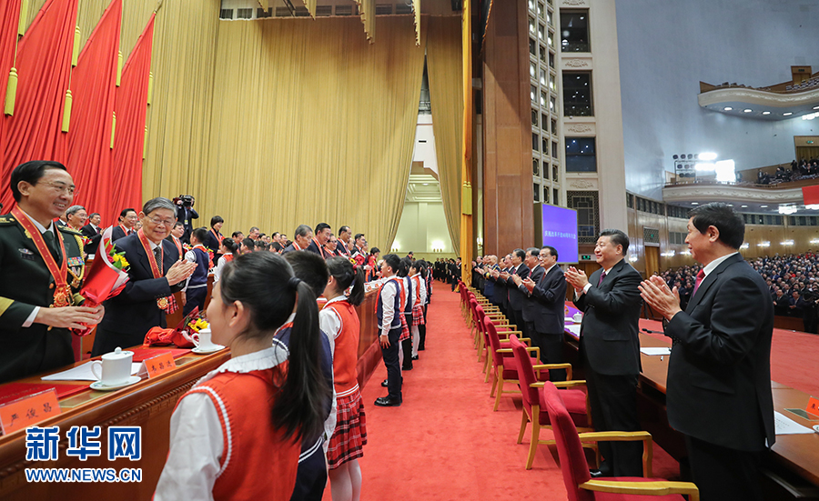 2018年12月18日,慶祝改革開放40周年大會在北京人民大會堂隆重舉行。中共中央總書記、國家主席、中央軍委主席習(xí)近平在大會上發(fā)表重要講話。這是習(xí)近平等鼓掌向受表彰人員表示祝賀。 新華社記者 鞠鵬 攝