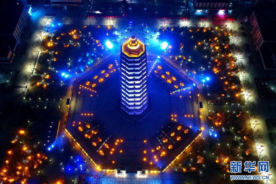 這是夜色下的西咸新區(qū)涇河新城崇文塔,美麗的夜景吸引了南來北往的游客。