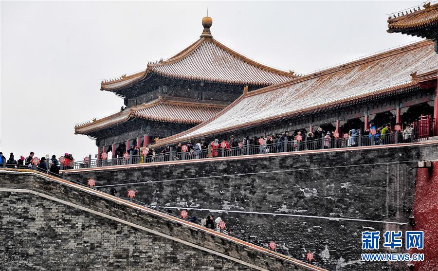 2月14日,游客在北京故宮游覽。 當(dāng)日,北京降雪,大批游人來到故宮游覽賞雪。 新華社記者 金良快 攝