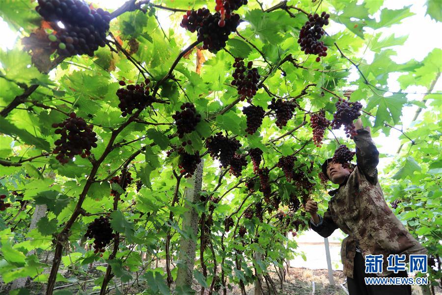 5月19日,在河北省唐山市海港經(jīng)濟開發(fā)區(qū)王灘鎮(zhèn)趙灘村,村民在管理大棚葡萄。 新華社發(fā)(李磊 攝) |