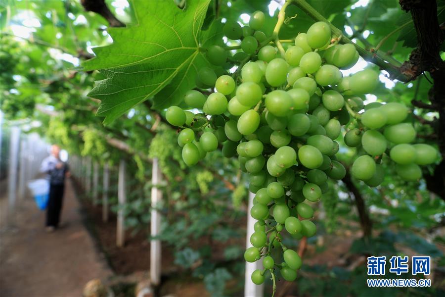 5月19日,在河北省唐山市海港經(jīng)濟開發(fā)區(qū)王灘鎮(zhèn)趙灘村,村民在管理大棚葡萄。 新華社發(fā)(李磊 攝)