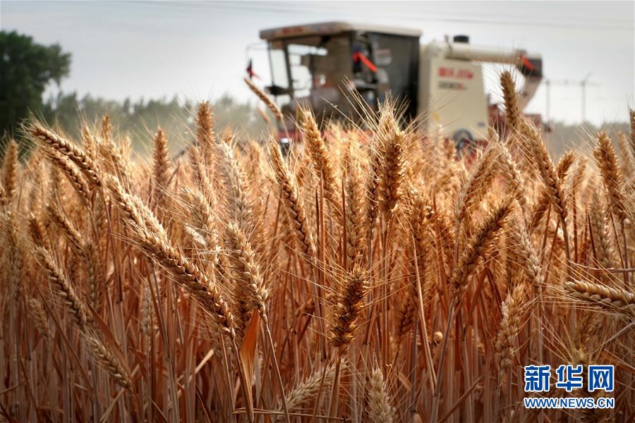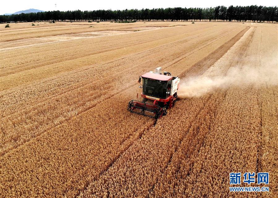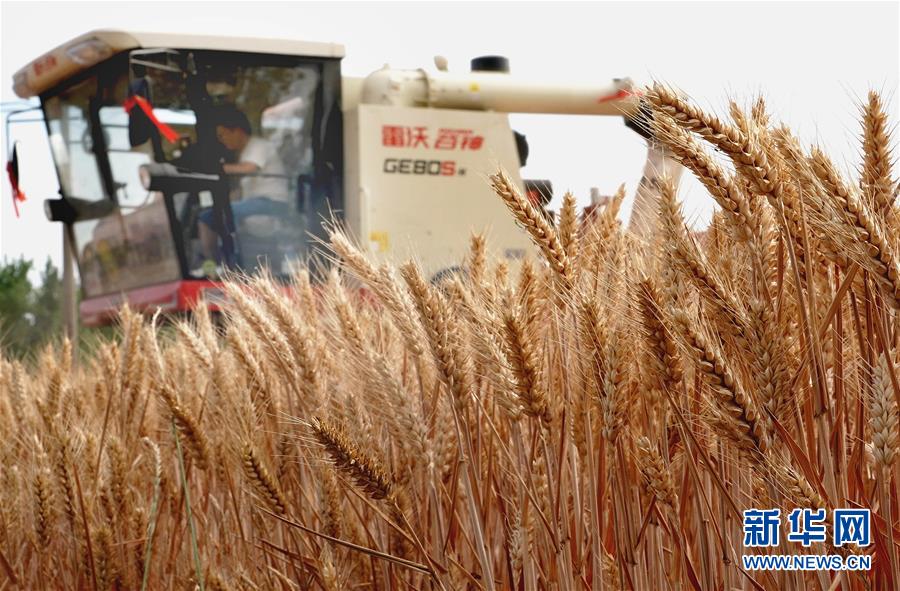 5月29日,在河南省舞陽縣保和鄉(xiāng)十里鋪村一處麥田里,農機手操作機械收割小麥。
