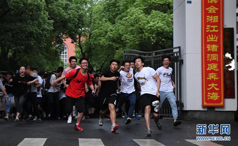 6月8日,高考結(jié)束后,考生沖出湖南省長沙市第一中學考點。 當日,全國部分地區(qū)2019年高考結(jié)束。 新華社記者 薛宇舸 攝
