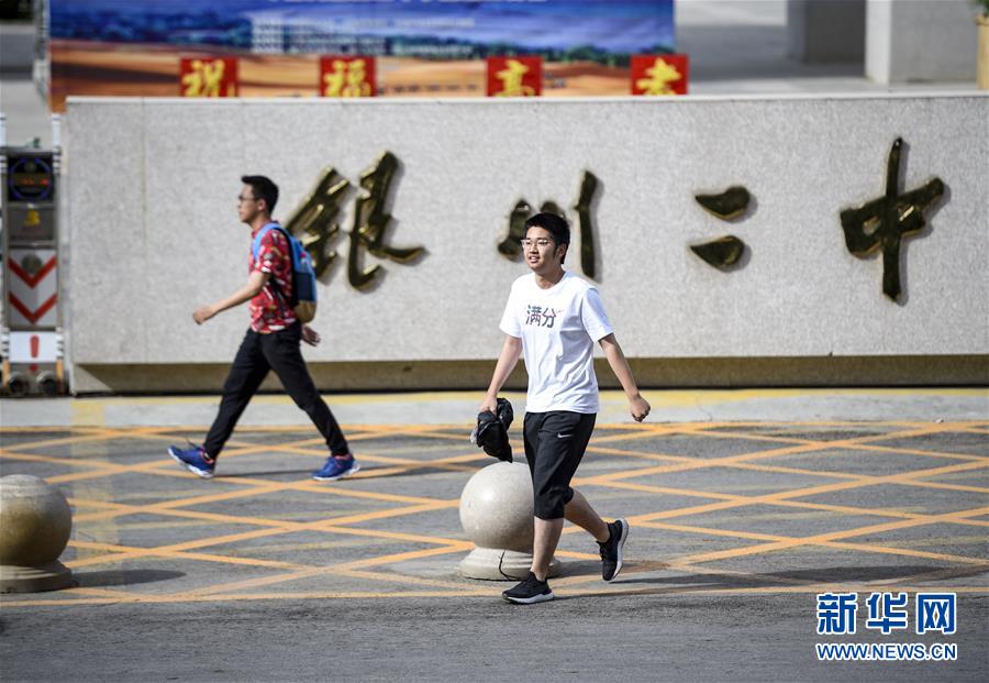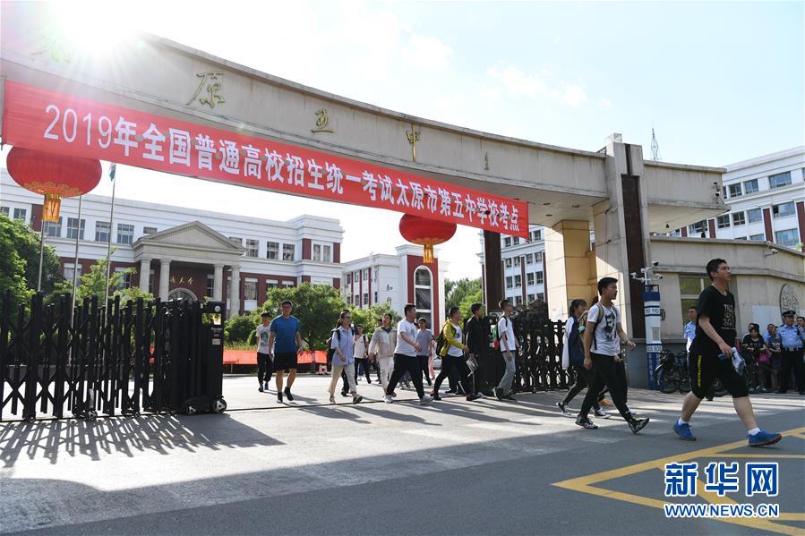 6月8日,在山西省太原市第五中學?键c,考生走出考場。 當日,全國部分地區(qū)2019年高考結(jié)束。 新華社記者 楊晨光 攝