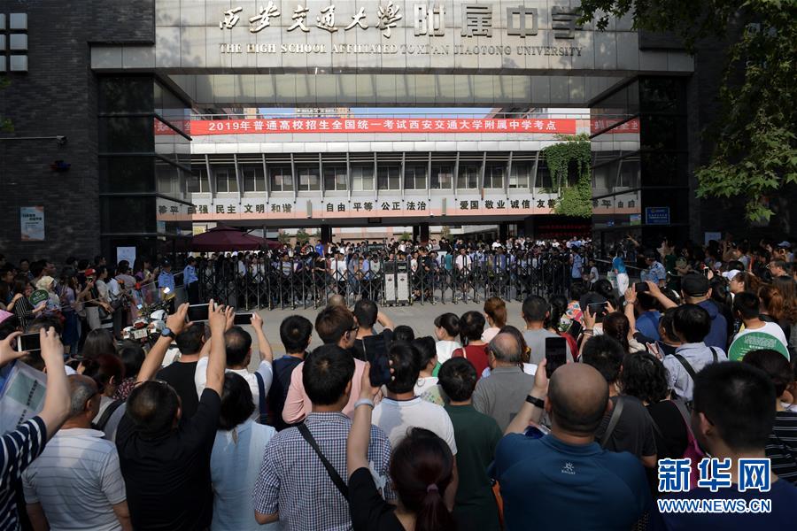 6月8日,在陜西省西安市西安交通大學附屬中學考點外,親友們等待迎接考生。 當日,全國部分地區(qū)2019年高考結(jié)束。 新華社記者 李一博 攝 |