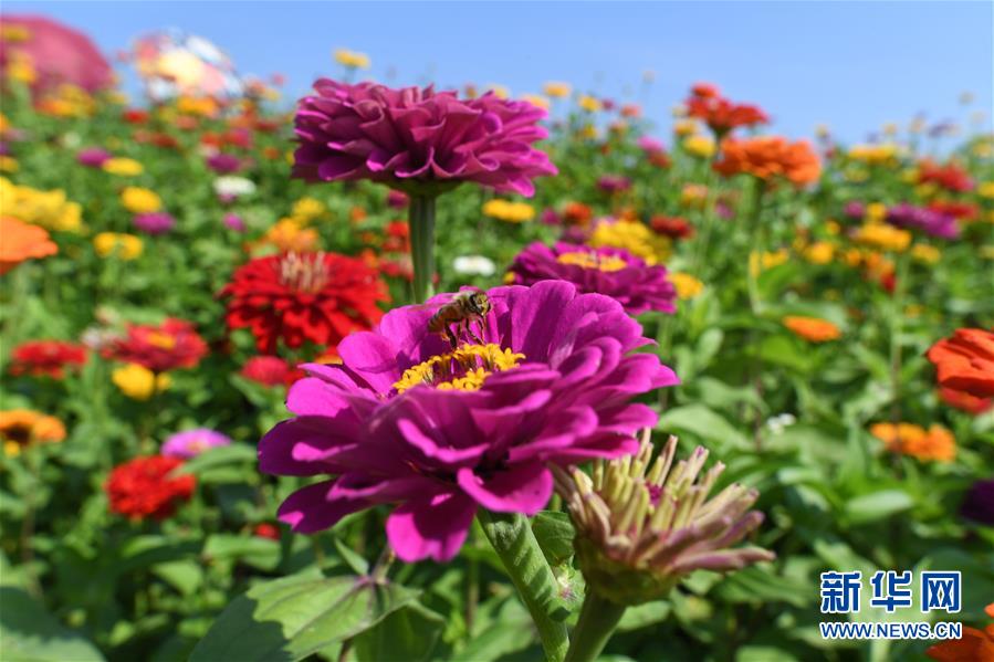9月4日,在長(zhǎng)春市蓮花山生態(tài)旅游度假區(qū)花田,蜜蜂在花間采蜜。 近日,吉林省長(zhǎng)春市蓮花山生態(tài)旅游度假區(qū)2100余畝花海向市民全面開(kāi)放,吸引了眾多游客前來(lái)觀賞。 新華社記者林宏攝