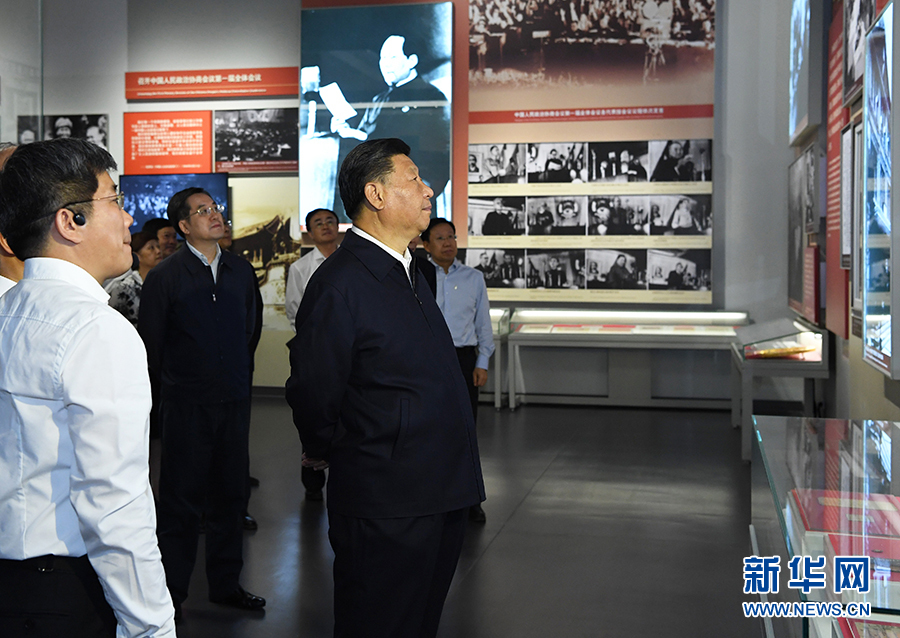 9月12日,中共中央總書記、國家主席、中央軍委主席習(xí)近平視察中共中央北京香山革命紀(jì)念地。這是習(xí)近平在香山革命紀(jì)念館參觀《為新中國奠基》主題展覽。 新華社記者 黃敬文 攝