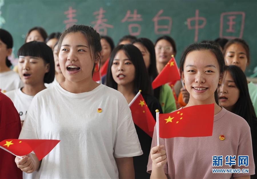 9月18日,邢臺(tái)技師學(xué)院的學(xué)生參加快閃活動(dòng)“我和國(guó)旗有個(gè)約會(huì)”。 當(dāng)日,河北省邢臺(tái)技師學(xué)院開展“青春告白中國(guó)”活動(dòng),學(xué)生們通過唱歌、快閃、專業(yè)課程等形式,表達(dá)對(duì)祖國(guó)的熱愛和祝福。 新華社記者 邢廣利 攝