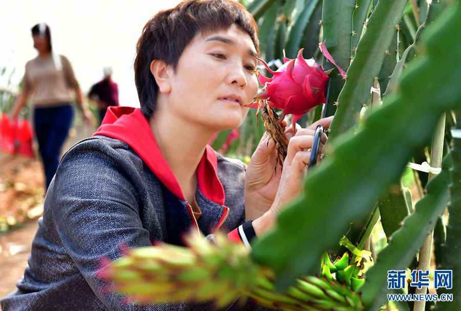 伊川縣平等鄉(xiāng)果農(nóng)采摘火龍果。 |
