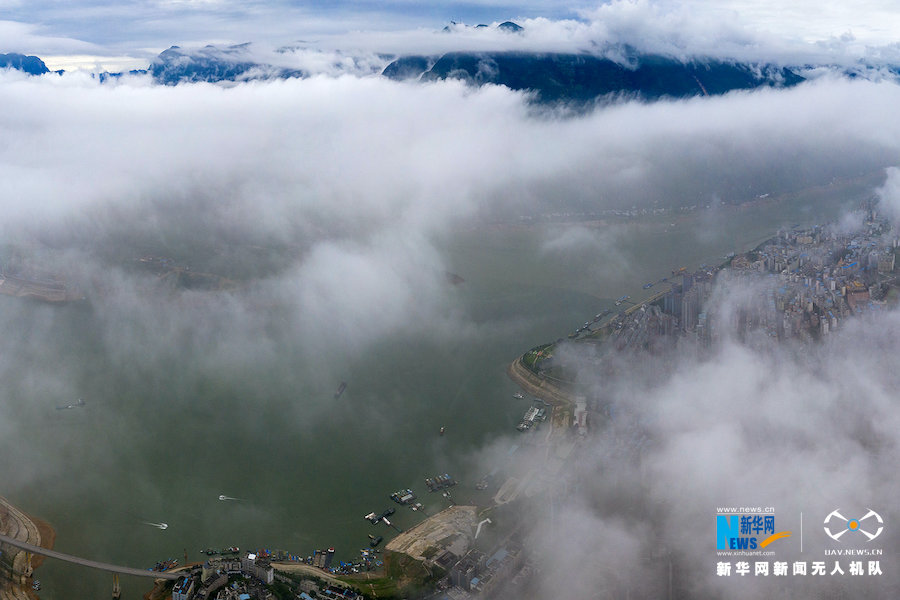 這是近期雨后的巫山,云霧繚繞在縣城上空,好似一層輕紗。新華網(wǎng)發(fā)(朱云平 攝)