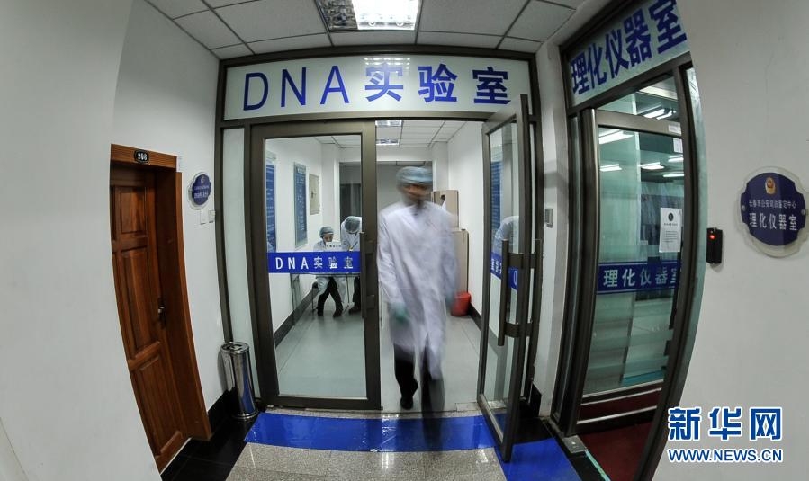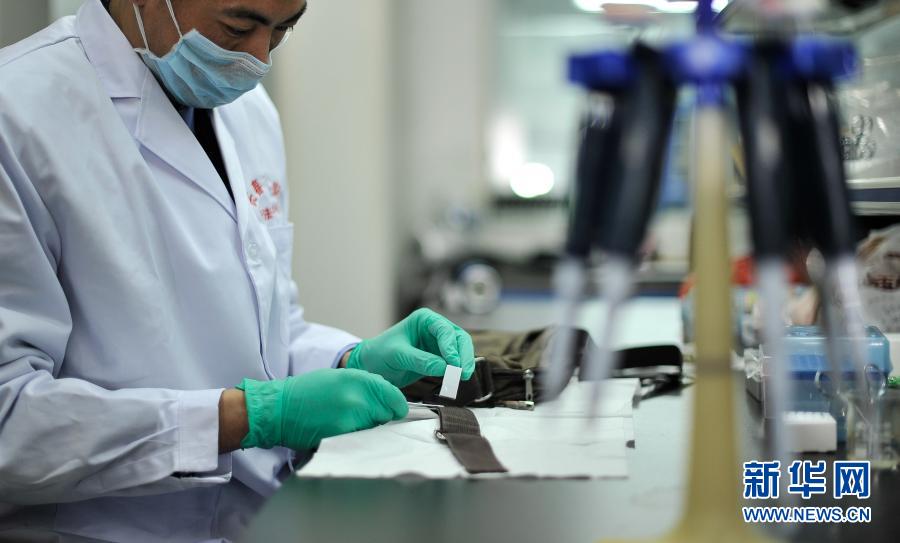 山東省濱州市公安局民對“2004.11.24”故意殺人案物證進行DNA檢材提。ㄙY料照片)。新華社發(fā)(公安部刑偵局供圖)
