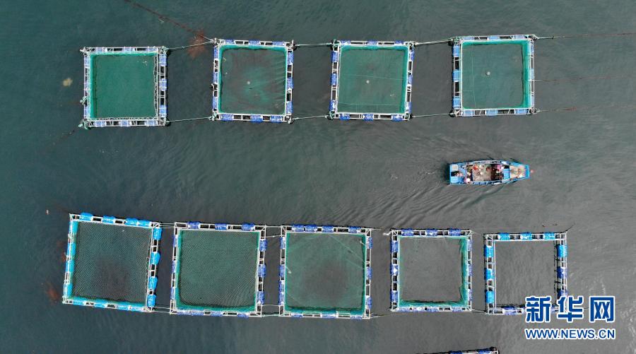 一艘漁船駛過山東省長島綜合試驗(yàn)區(qū)南隍城島海上養(yǎng)殖區(qū)(2020年8月8日攝,無人機(jī)照片)。近年來,山東省長島綜合試驗(yàn)區(qū)南隍城島在嚴(yán)守海洋生態(tài)紅線的基礎(chǔ)上,有序發(fā)展網(wǎng)箱養(yǎng)殖、立體生態(tài)養(yǎng)殖等特色海洋經(jīng)濟(jì)。 新華社記者 王凱 攝