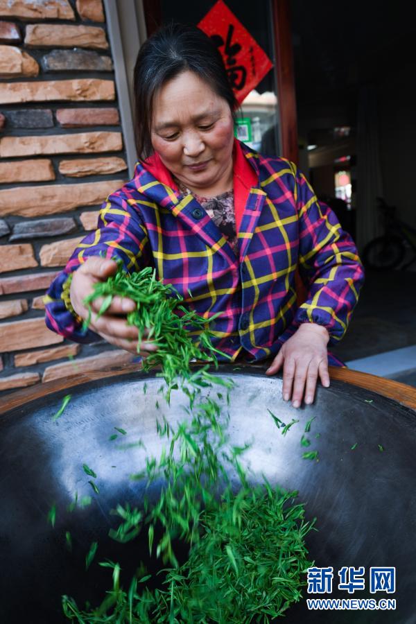3月23日,杭州梅家塢村的茶農(nóng)在炒制西湖龍井“明前茶”。新華社記者 徐昱 攝