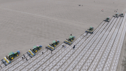 筆直且行距均等的棉花地膜