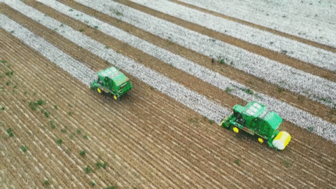 國產(chǎn)采棉打包一體機采收場景