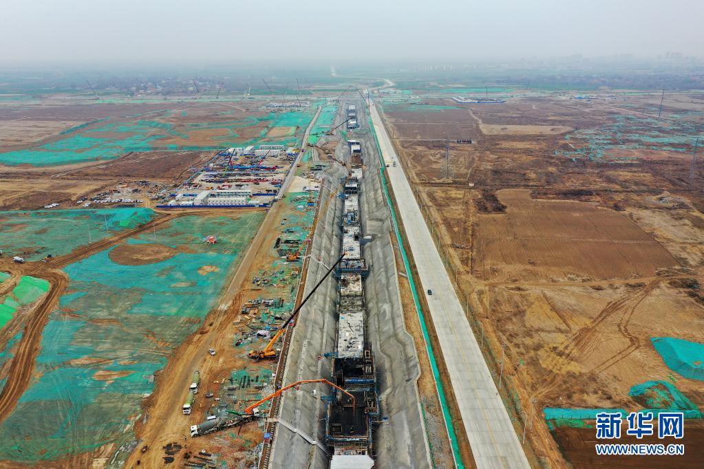 這是3月18日拍攝的雄安新區(qū)啟動(dòng)區(qū)地下管廊建設(shè)現(xiàn)場(chǎng)(無(wú)人機(jī)照片)。新華社記者 牟宇 攝