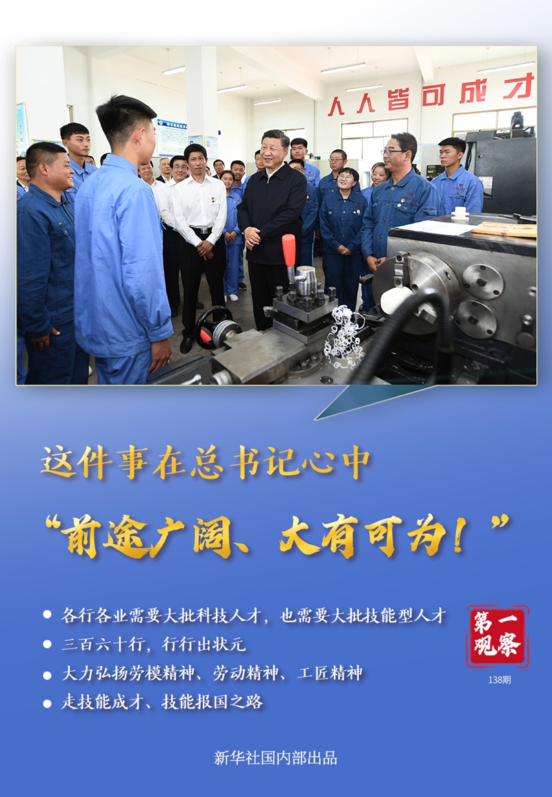 “要樹(shù)立正確人才觀”。習(xí)近平總書(shū)記反復(fù)強(qiáng)調(diào)培養(yǎng)技術(shù)技能人才的重要性,還多次走到老師和同學(xué)們中間,為大家加油打氣。