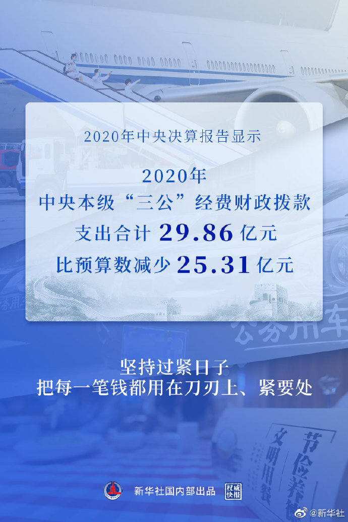 受國務(wù)院委托,財(cái)政部部長劉昆7日向十三屆全國人大常委會第二十九次會議作2020年中央決算的報(bào)告。根據(jù)報(bào)告,2020年,中央本級“三公”經(jīng)費(fèi)財(cái)政撥款支出合計(jì)29.86億元,比預(yù)算數(shù)減少25.31億元。主要是中央部門落實(shí)過緊日子要求,厲行節(jié)約,以及客觀因素導(dǎo)致部分公務(wù)活動減少。(記者申鋮;海報(bào)設(shè)計(jì)楊軼群)