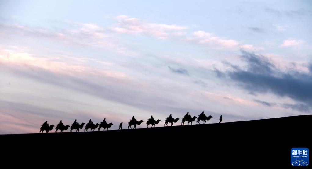 10月3日,游客在甘肅省敦煌市鳴沙山月牙泉景區(qū)游覽。新華社發(fā)(張曉亮 攝)
