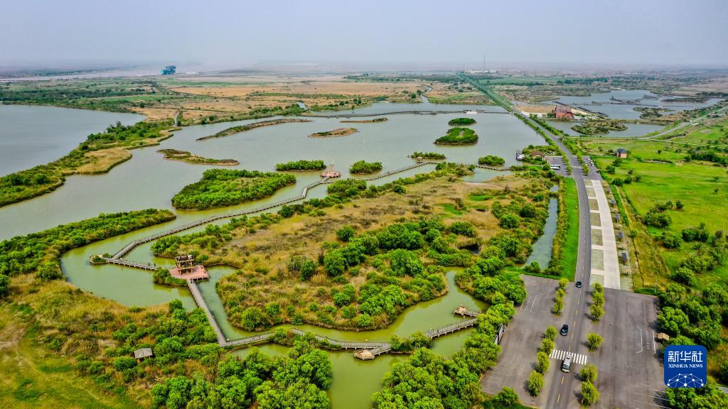 2021年5月13日拍攝的山東黃河三角洲國家級(jí)自然保護(hù)區(qū)景色(無人機(jī)照片)。新華社記者 郭緒雷 攝