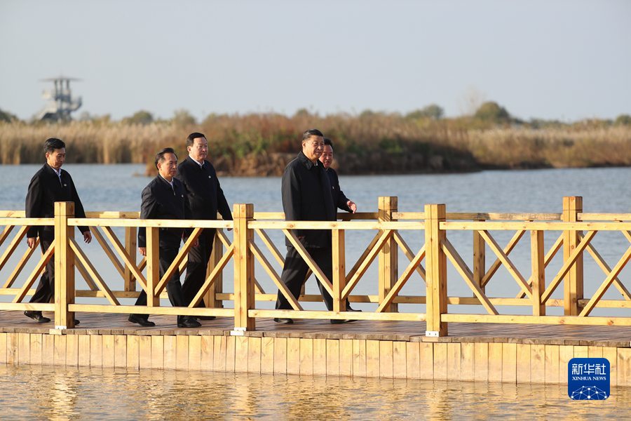 10月22日下午,中共中央總書記、國家主席、中央軍委主席習(xí)近平在山東省濟(jì)南市主持召開深入推動(dòng)黃河流域生態(tài)保護(hù)和高質(zhì)量發(fā)展座談會(huì)并發(fā)表重要講話。這是座談會(huì)前,習(xí)近平20日下午在東營市黃河三角洲國家級(jí)自然保護(hù)區(qū)考察。 新華社記者 李學(xué)仁 攝