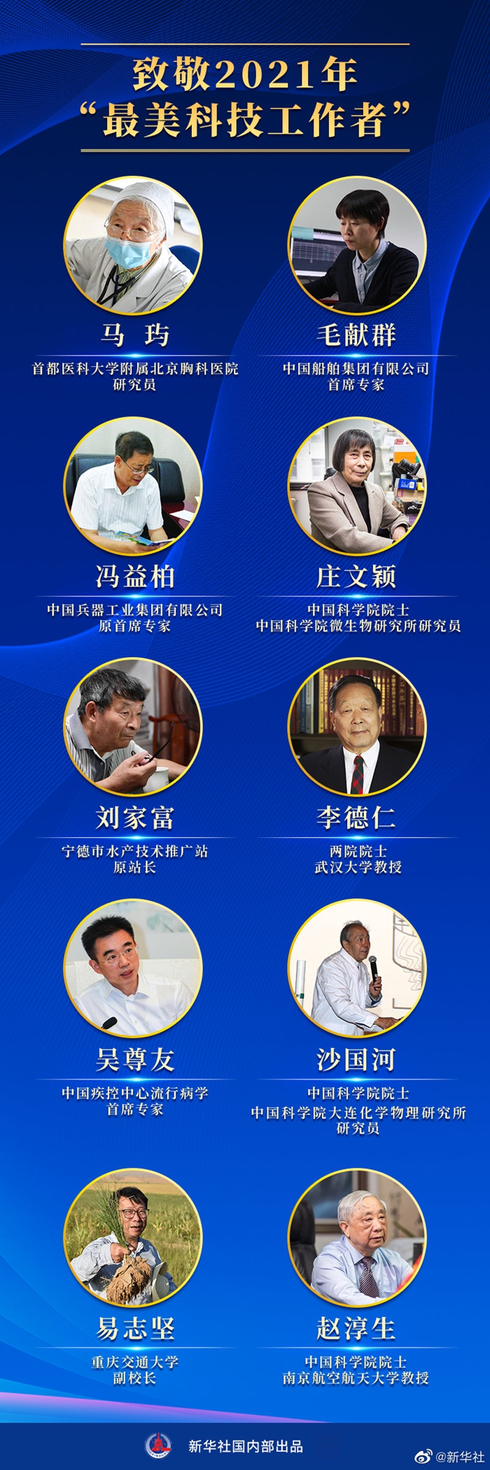 中央宣傳部、中國科協(xié)等6部門近日發(fā)布2021年“最美科技工作者”先進事跡。他們有的聚焦國家重大需求,自主創(chuàng)新攻克關(guān)鍵核心技術(shù);有的積極投身抗疫最前線,踐行“全心全意為病人服務(wù)”初心;有的畢生致力于成果轉(zhuǎn)化技術(shù)推廣,將論文寫在祖國大地上……他們是誰?戳圖,致敬閃耀的科技群星。ㄓ浾撸簻馗?cè)A,海報制作:楊軼群)