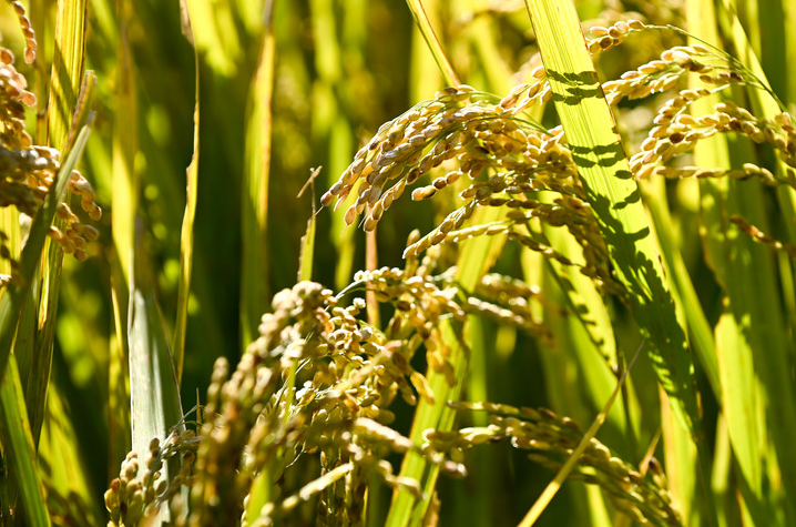 在吉林省延邊朝鮮族自治州和龍市光東村拍攝的已經(jīng)成熟的水稻。新華社記者 顏麟蘊 2021年10月11日攝