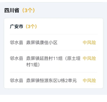 截至5月18日24時(shí),四川省共有3個(gè)中風(fēng)險(xiǎn)地區(qū),四川省其余地區(qū)均為低風(fēng)險(xiǎn)地區(qū)。