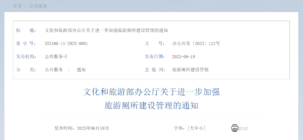 記者6月19日從文化和旅游部了解到,文化和旅游部辦公廳日前發(fā)出通知,進(jìn)一步加強(qiáng)旅游廁所建設(shè)管理。