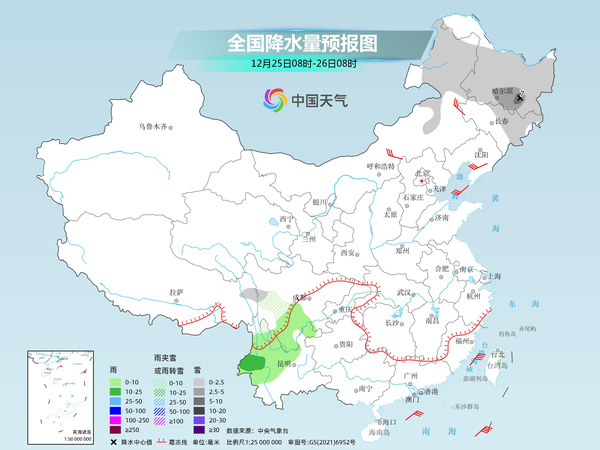 明天,黑龍江東部、新疆北疆北部等地部分地區(qū)有小雪。四川南部、云南西部和北部、海南島等地部分地區(qū)有小到中雨。